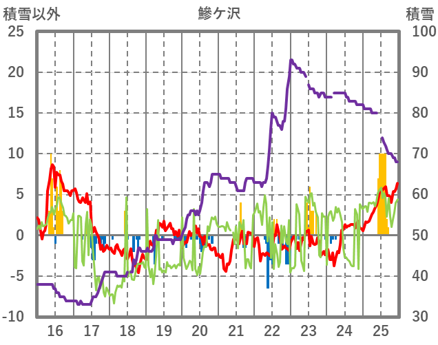 | 日 | 時 | 気温 | 降水 | 風向/風速 | 日照 | 積雪 | 降雪 |