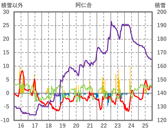 | 日 | 時 | 気温 | 降水 | 風向/風速 | 日照 | 積雪 | 降雪 |