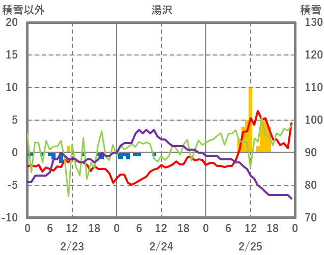 | 日 | 時 | 気温 | 降水 | 風向/風速 | 日照 | 積雪 | 降雪 |