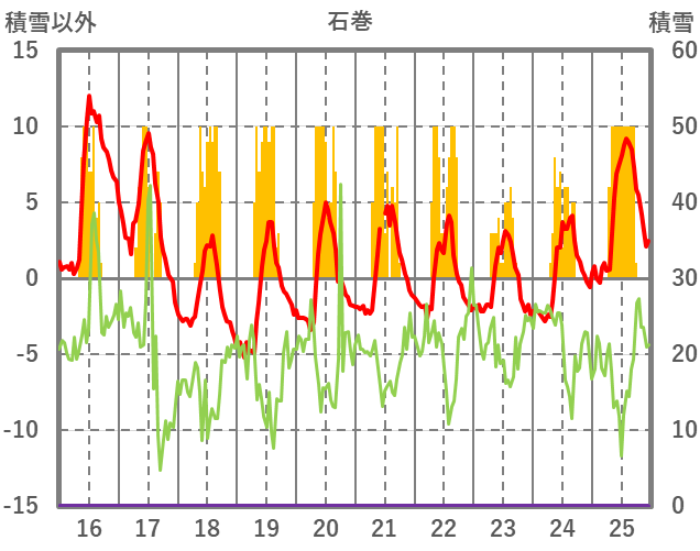 | 日 | 時 | 気温 | 降水 | 風向/風速 | 日照 | 積雪 | 降雪 |
