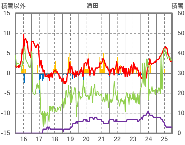 | 日 | 時 | 気温 | 降水 | 風向/風速 | 日照 | 積雪 | 降雪 |