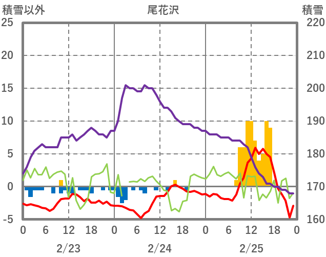 | 日 | 時 | 気温 | 降水 | 風向/風速 | 日照 | 積雪 | 降雪 |