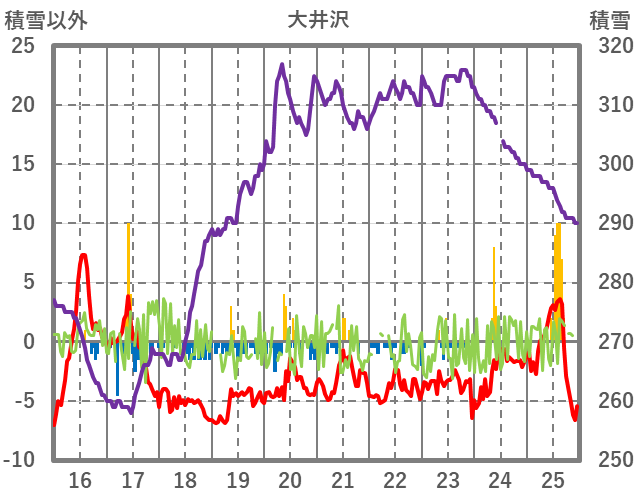 | 日 | 時 | 気温 | 降水 | 風向/風速 | 日照 | 積雪 | 降雪 |