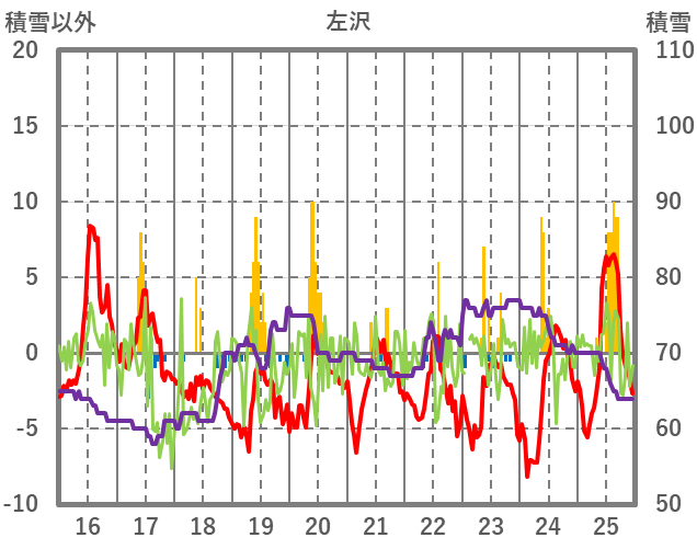 | 日 | 時 | 気温 | 降水 | 風向/風速 | 日照 | 積雪 | 降雪 |