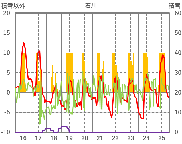 | 日 | 時 | 気温 | 降水 | 風向/風速 | 日照 | 積雪 | 降雪 |
