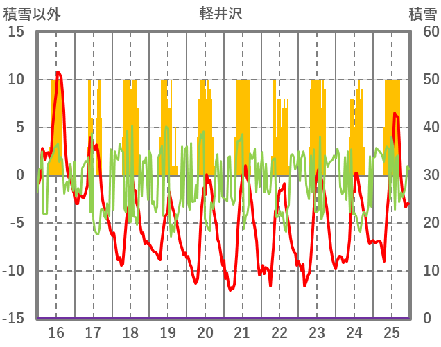 | 日 | 時 | 気温 | 降水 | 風向/風速 | 日照 | 積雪 | 降雪 |