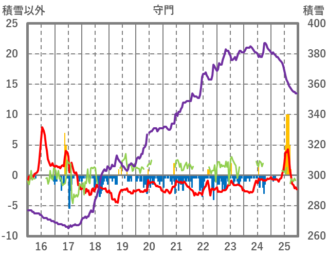 | 日 | 時 | 気温 | 降水 | 風向/風速 | 日照 | 積雪 | 降雪 |