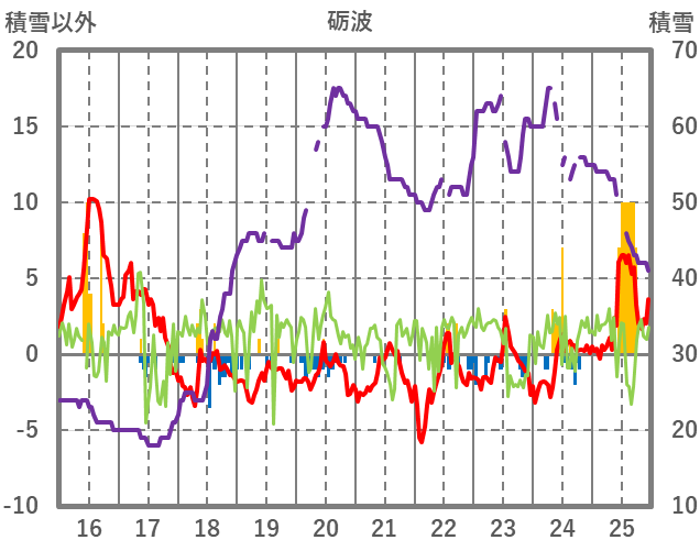 | 日 | 時 | 気温 | 降水 | 風向/風速 | 日照 | 積雪 | 降雪 |