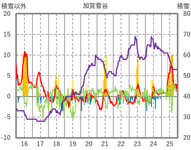 | 日 | 時 | 気温 | 降水 | 風向/風速 | 日照 | 積雪 | 降雪 |