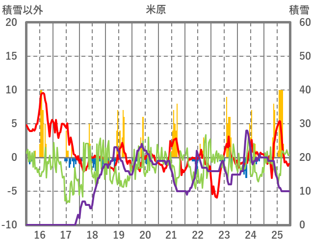 | 日 | 時 | 気温 | 降水 | 風向/風速 | 日照 | 積雪 | 降雪 |