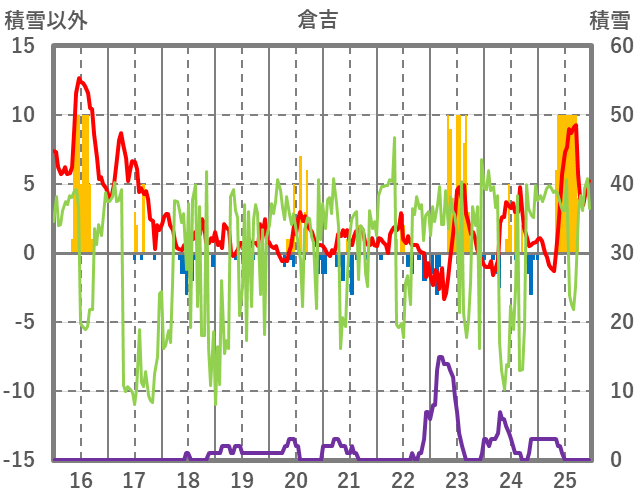 | 日 | 時 | 気温 | 降水 | 風向/風速 | 日照 | 積雪 | 降雪 |