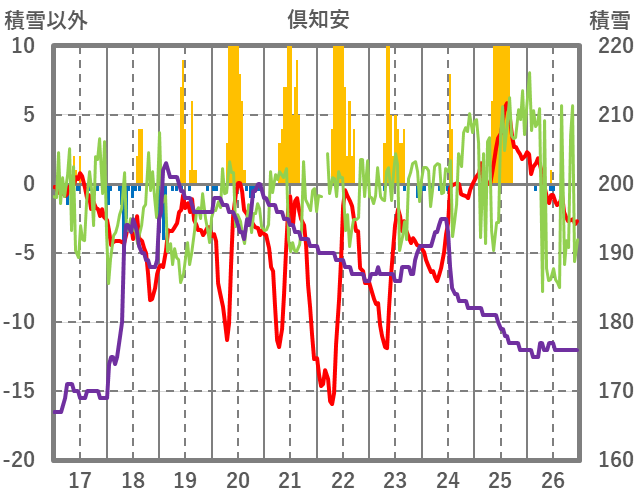 | 日 | 時 | 気温 | 降水 | 風向/風速 | 日照 | 積雪 | 降雪 |