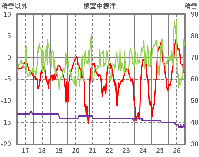 | 日 | 時 | 気温 | 降水 | 風向/風速 | 日照 | 積雪 | 降雪 |