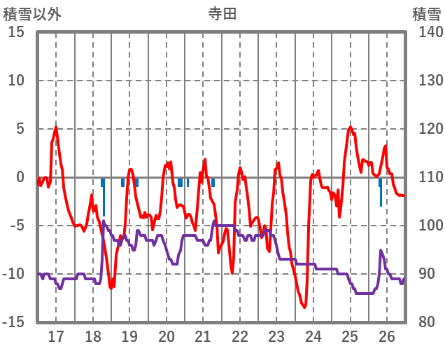 | 日 | 時 | 気温 | 降水 | 風向/風速 | 日照 | 積雪 | 降雪 |