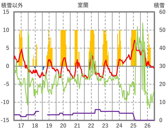 | 日 | 時 | 気温 | 降水 | 風向/風速 | 日照 | 積雪 | 降雪 |