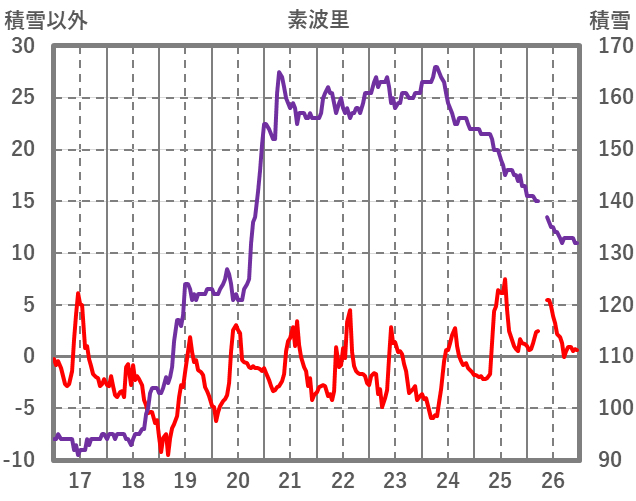 | 日 | 時 | 気温 | 降水 | 風向/風速 | 日照 | 積雪 | 降雪 |