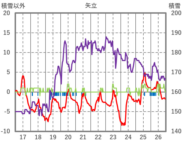 | 日 | 時 | 気温 | 降水 | 風向/風速 | 日照 | 積雪 | 降雪 |