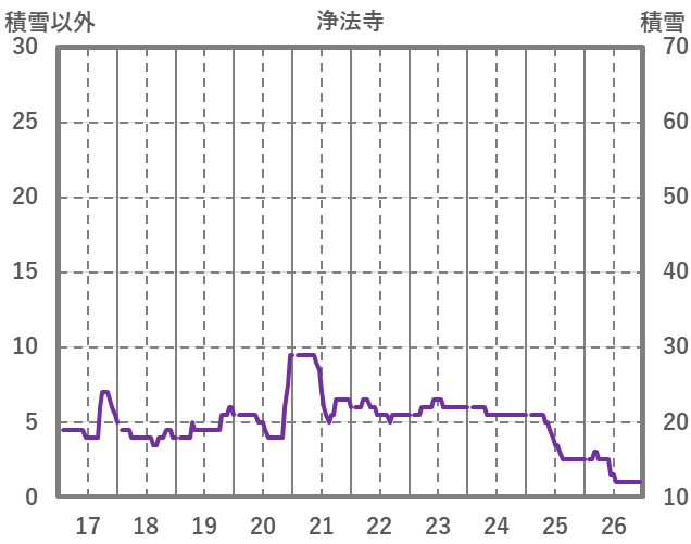 | 日 | 時 | 気温 | 降水 | 風向/風速 | 日照 | 積雪 | 降雪 |