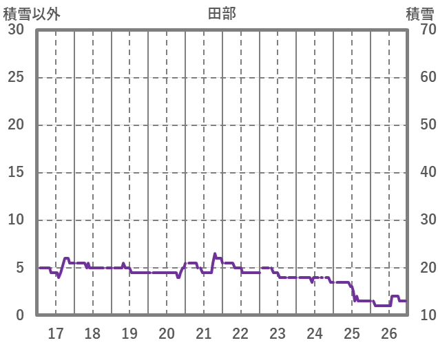 | 日 | 時 | 気温 | 降水 | 風向/風速 | 日照 | 積雪 | 降雪 |