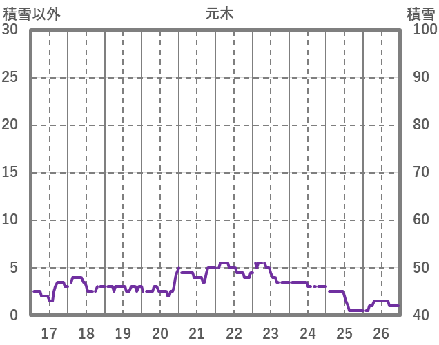 | 日 | 時 | 気温 | 降水 | 風向/風速 | 日照 | 積雪 | 降雪 |