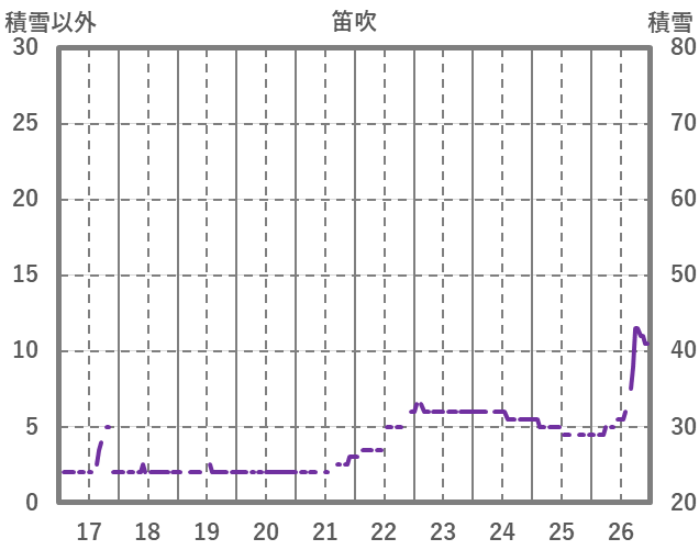 | 日 | 時 | 気温 | 降水 | 風向/風速 | 日照 | 積雪 | 降雪 |