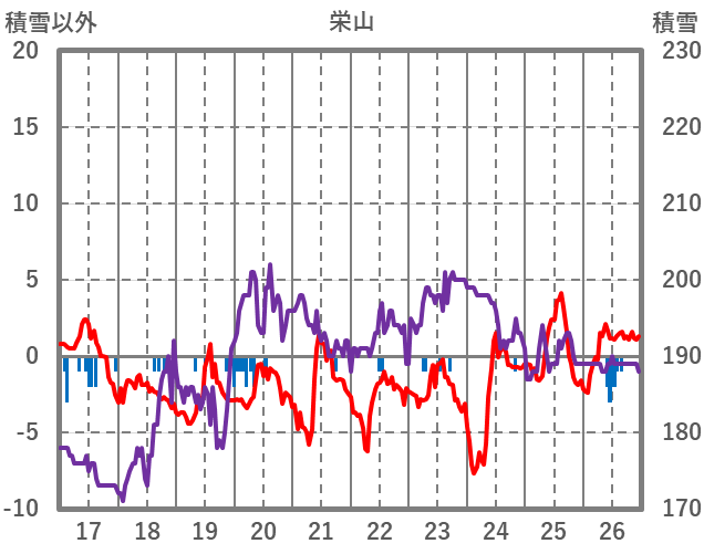 | 日 | 時 | 気温 | 降水 | 風向/風速 | 日照 | 積雪 | 降雪 |