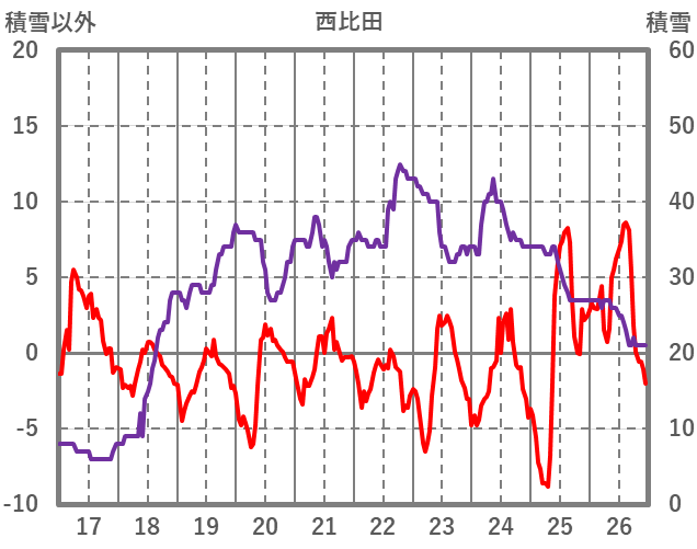 | 日 | 時 | 気温 | 降水 | 風向/風速 | 日照 | 積雪 | 降雪 |