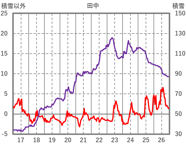 | 日 | 時 | 気温 | 降水 | 風向/風速 | 日照 | 積雪 | 降雪 |