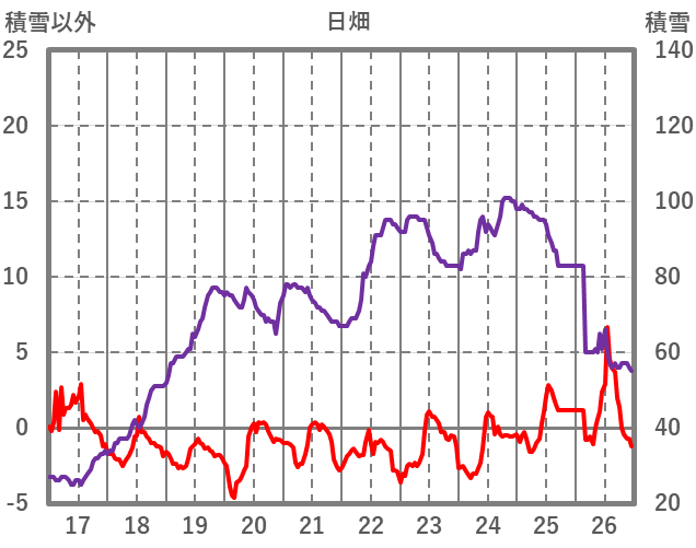 | 日 | 時 | 気温 | 降水 | 風向/風速 | 日照 | 積雪 | 降雪 |