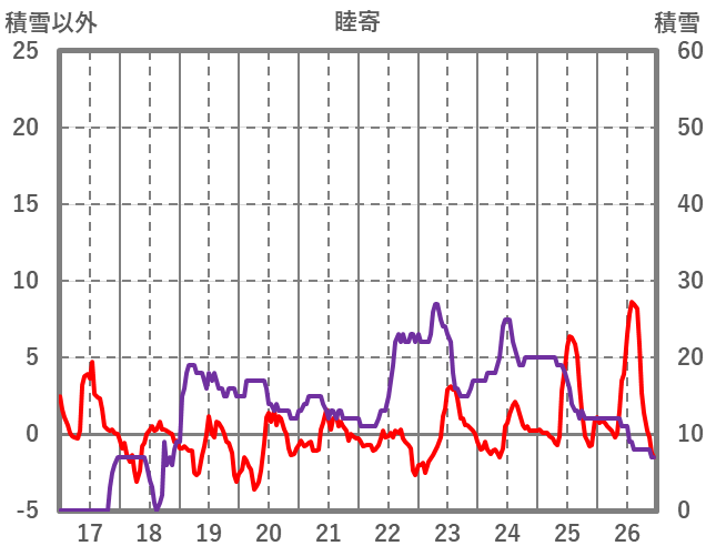 | 日 | 時 | 気温 | 降水 | 風向/風速 | 日照 | 積雪 | 降雪 |