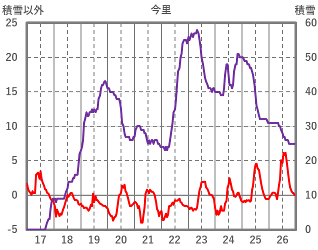 | 日 | 時 | 気温 | 降水 | 風向/風速 | 日照 | 積雪 | 降雪 |