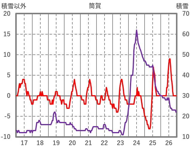 | 日 | 時 | 気温 | 降水 | 風向/風速 | 日照 | 積雪 | 降雪 |