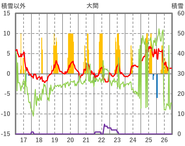 | 日 | 時 | 気温 | 降水 | 風向/風速 | 日照 | 積雪 | 降雪 |