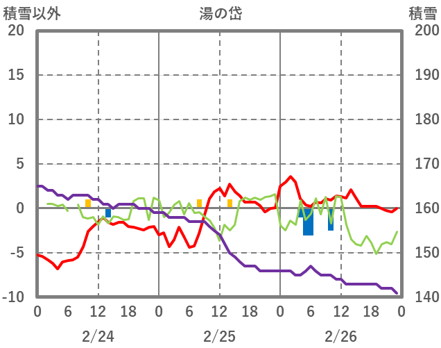 | 日 | 時 | 気温 | 降水 | 風向/風速 | 日照 | 積雪 | 降雪 |