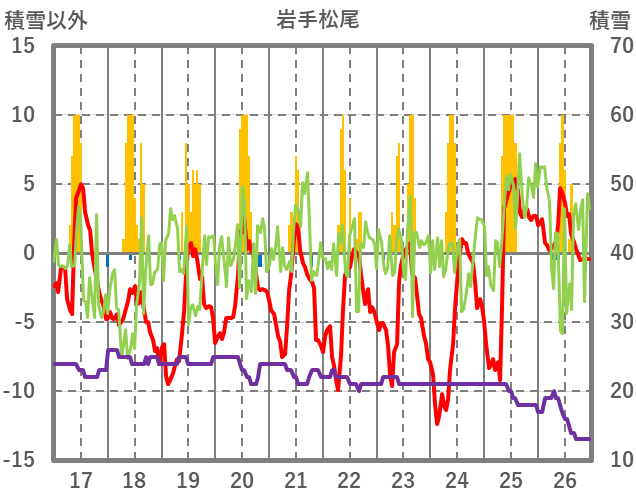 | 日 | 時 | 気温 | 降水 | 風向/風速 | 日照 | 積雪 | 降雪 |