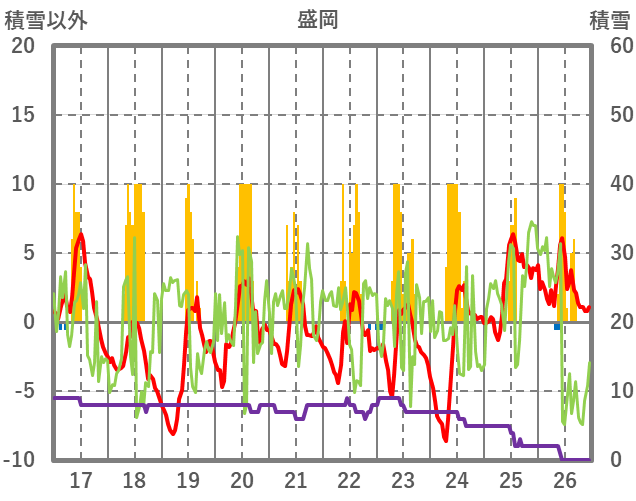 | 日 | 時 | 気温 | 降水 | 風向/風速 | 日照 | 積雪 | 降雪 |
