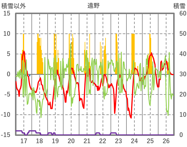 | 日 | 時 | 気温 | 降水 | 風向/風速 | 日照 | 積雪 | 降雪 |