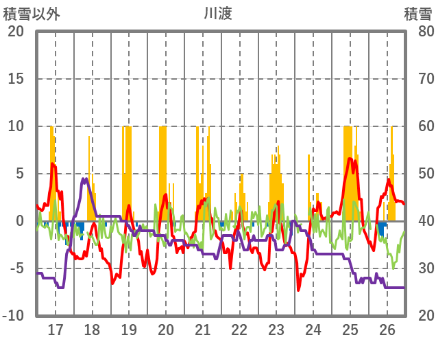 | 日 | 時 | 気温 | 降水 | 風向/風速 | 日照 | 積雪 | 降雪 |