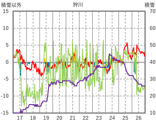 | 日 | 時 | 気温 | 降水 | 風向/風速 | 日照 | 積雪 | 降雪 |