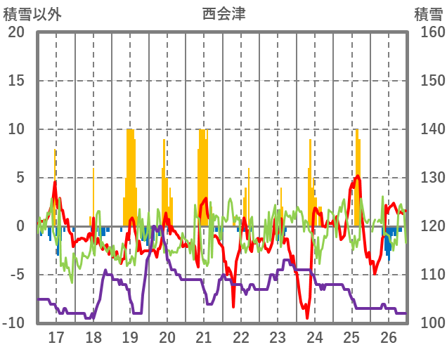 | 日 | 時 | 気温 | 降水 | 風向/風速 | 日照 | 積雪 | 降雪 |