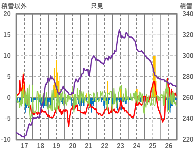 | 日 | 時 | 気温 | 降水 | 風向/風速 | 日照 | 積雪 | 降雪 |