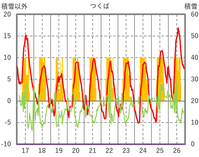 | 日 | 時 | 気温 | 降水 | 風向/風速 | 日照 | 積雪 | 降雪 |