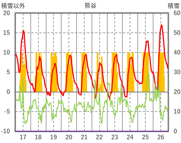 | 日 | 時 | 気温 | 降水 | 風向/風速 | 日照 | 積雪 | 降雪 |