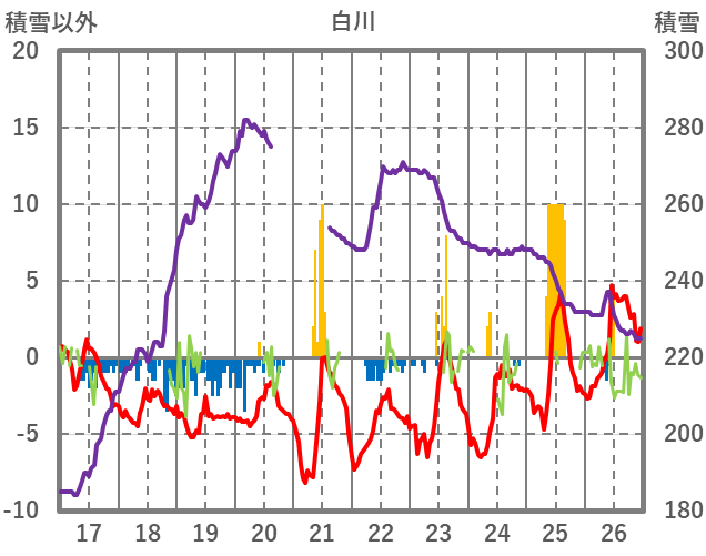 | 日 | 時 | 気温 | 降水 | 風向/風速 | 日照 | 積雪 | 降雪 |
