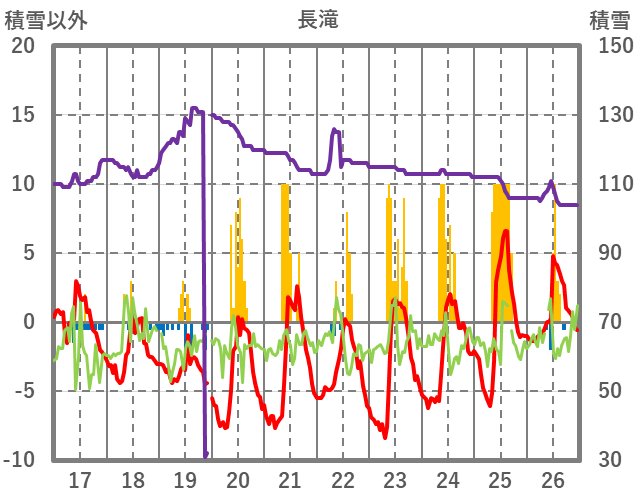 | 日 | 時 | 気温 | 降水 | 風向/風速 | 日照 | 積雪 | 降雪 |