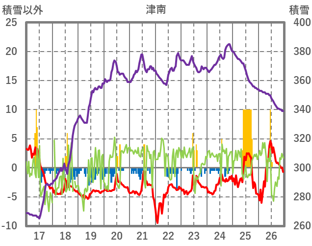 | 日 | 時 | 気温 | 降水 | 風向/風速 | 日照 | 積雪 | 降雪 |