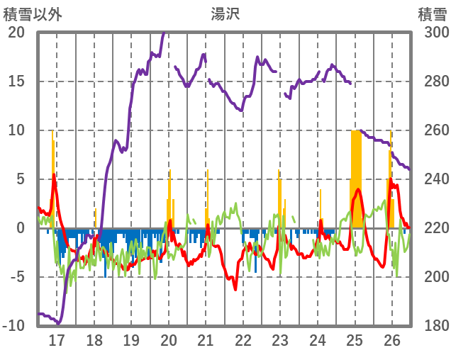 | 日 | 時 | 気温 | 降水 | 風向/風速 | 日照 | 積雪 | 降雪 |