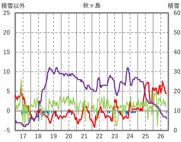 | 日 | 時 | 気温 | 降水 | 風向/風速 | 日照 | 積雪 | 降雪 |