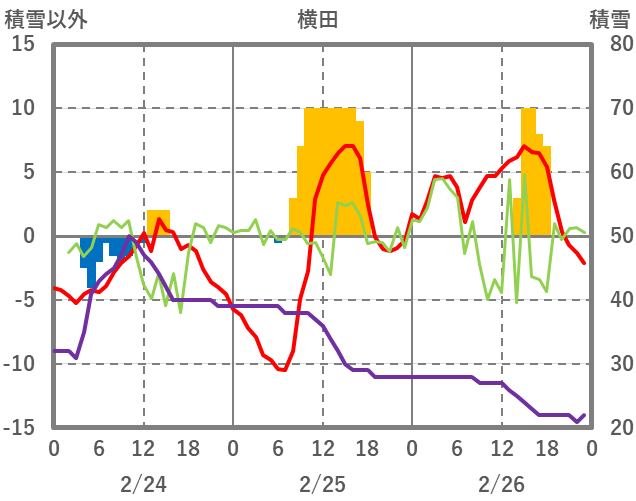 | 日 | 時 | 気温 | 降水 | 風向/風速 | 日照 | 積雪 | 降雪 |