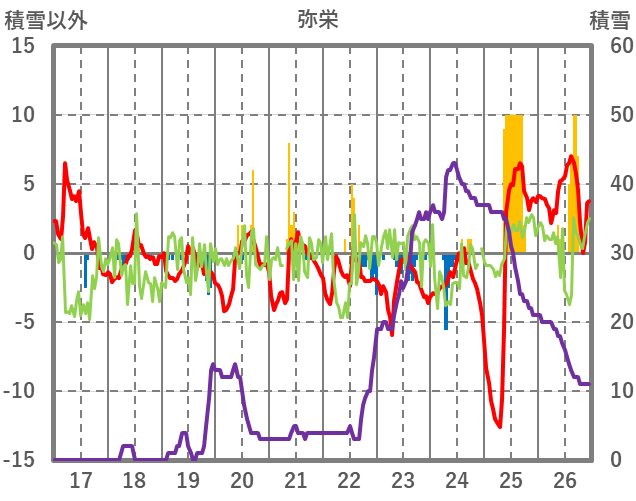 | 日 | 時 | 気温 | 降水 | 風向/風速 | 日照 | 積雪 | 降雪 |